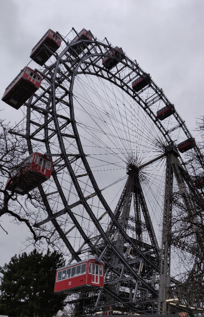 Dat is onderdeel van een groot park in Wenen van zo’n zes vierkante kilometer groot. Zo groot is de oppervlakte van alle attracties gelukkig niet. Toen wij er waren was het echter gesloten, maar wel kun je er gewoon rondzwerven. De meest bekende attractie daar is het grote reuzenrad, wat zo’n 125 jaar oud is.