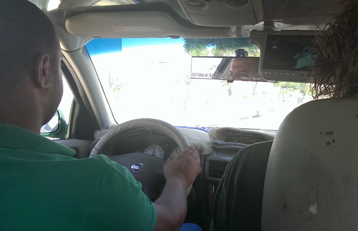 Vaste prijzen voor bepaalde ritten, niks meer, niks minder. Inmiddels heb ik een nieuwe bril, dus dat gaat me niet meer overkomen natuurlijk. De volgende ochtend hebben we wel wat handjes geklapt om naar Petra te touren. Er ligt een snelweg, de rit duurt zo’n twee uur en onze taxichauffeur Ahmed zorgde ervoor dat het een rit werd om nooit te vergeten. De auto lag bezaaid met frisdrankflesjes, al dan niet gevuld, snoepjes en rotzooi. We mochten pakken wat we wilden en hij praatte een aardig woordje Engels, altijd fijn.