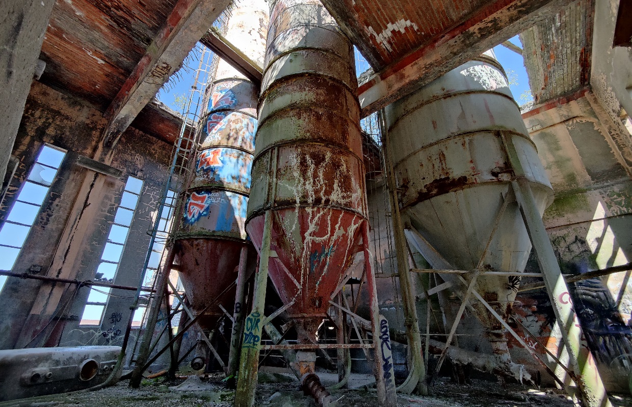 Bummer it was, maar 500 meter verderop lag een verlaten cementfabriek, dus dat was onze volgende stop. Hoe lang dat al leeg stond, geen idee, maar een jaartje of 20 á 30 geloof ik direct. Een heerlijke verlaten plek om rond te struinen was het. Ook hadden er tientallen duiven hun plekje van gemaakt, want de kilo’s vogelstront zaten aan de muren.