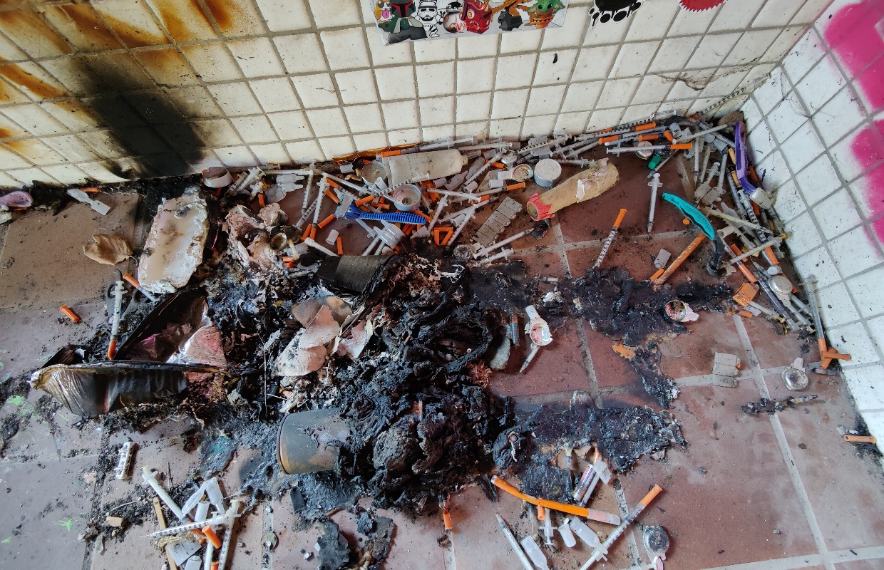 Bergen afval op het spoor, honderden spuiten op de grond, tientallen graffitibussen, overal brandschade van de kleine vuurtjes die in de nachtelijke uren vast en zeker worden aangestoken. Al met al een leuke plek om een langs te tuffen, eentje waar je geen uren zult vertoeven, maar wel eentje waar je wat prachtige en kleurrijke kiekjes kunt schieten.
