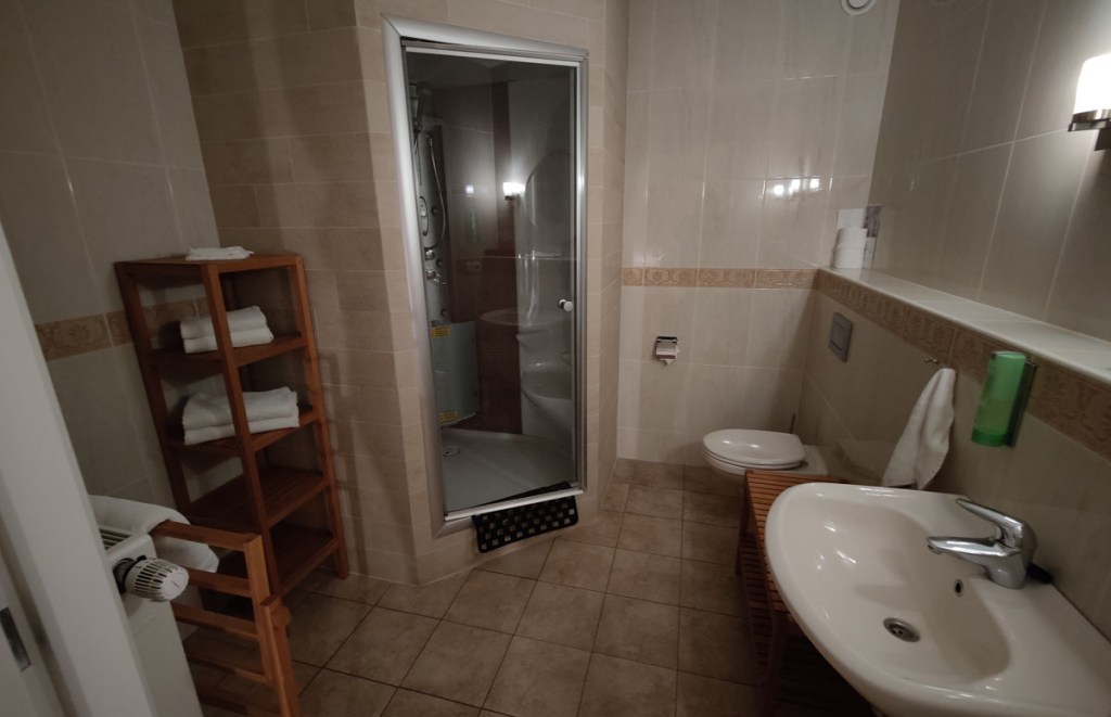 De kamer voelt enerzijds wat kelderachtig, en anderzijds heel ruimtelijk. Ik vond het heel knus en voelde me er direct thuis. Sowieso is de boerderij zo prachtig, dat het gek zou zijn geweest als de kamers dat niet ook waren. De badkamer is ook prima in orde, zeker dankzij die stoomcabine. Hoewel ik de eucalyptusgeur een beetje miste, was het verder een heerlijk apparaat met een douche die nog extra straaltjes heeft die je zelf kunt instellen op dat ene pijnlijke spiertje in je rug. Zo fijn! Er ligt ook een vrij duidelijke uitleg bij, dus je kunt zelf aan de slag met de stoomcabine.