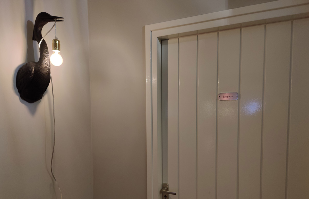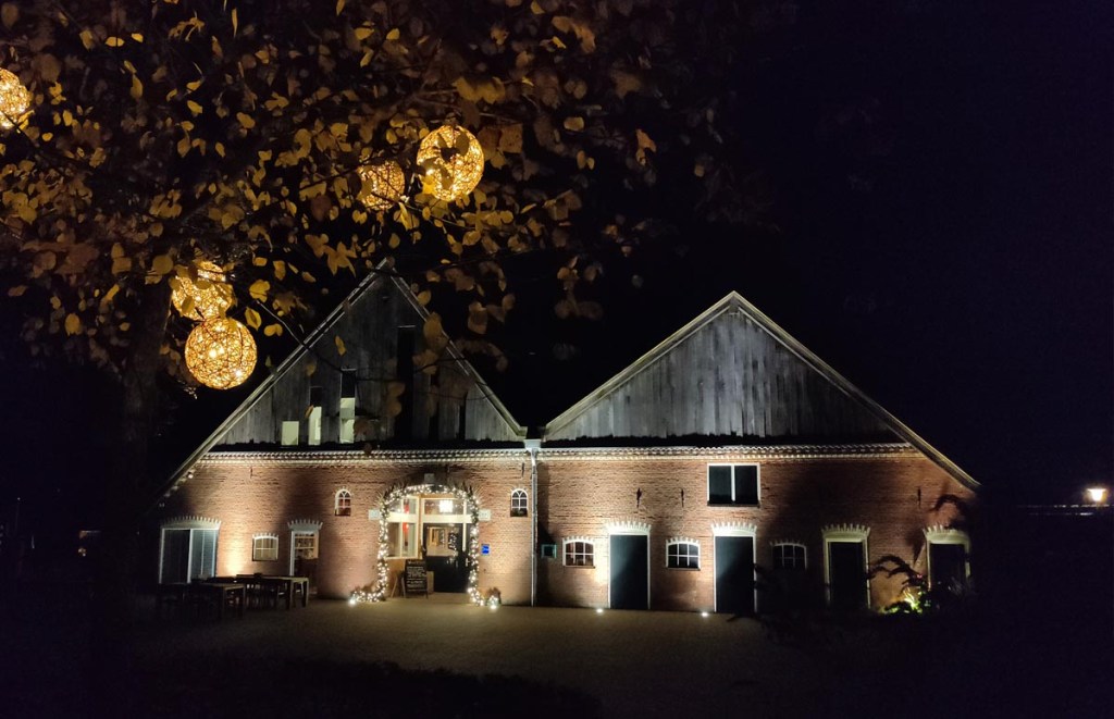 We kwamen helaas wat laat aan, al konden we daardoor in het donker wel genieten van de sfeervolle verlichting. En de spannende geluiden die uit de stal bleken te komen, want dit niet alleen van de buitenkant een soort boerderij, het is er echt eentje! Naast het boerderijhotel ligt een stal met allemaal fluffy koeien. Als je heel voorzichtig aan komt, dan kun je ze aaien. Over het algemeen staan de koeien overdag op het land, maar ‘s avonds zijn ze blijkbaar lekker op stal te vinden. Ik vind zelf koeien heerlijk ruiken, maar als je bang bent voor geurtjes in je hotelkamer: die hebben wij niet geroken hoor.
