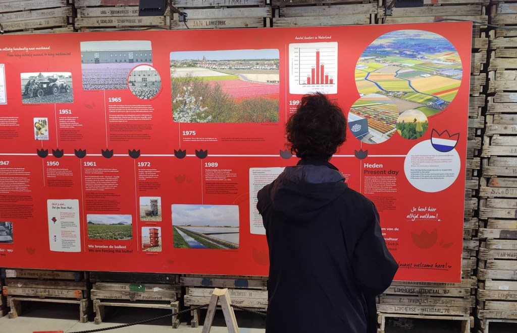 Het leuke is dat Tulip Experience Amsterdam (wat, nogmaals, niet in Amsterdam is 😉 ) niet alleen een bollenveld is en that’s it. Het is een soort tulpenmuseum, een ode aan de tulp. Erg charmant. Als je binnenkomt dan kun je vanalles lezen over het ontstaan van de tulp, de problemen waar ze tegenaan zijn gelopen en de vele soorten die er zijn. Ik vind bijvoorbeeld gekartelde tulpen leuk, want wat mij betreft zijn de gewone exemplaren een beetje tegen het saaie aan. Hoewel, in die velden zo allemaal bij elkaar zijn ze stuk voor stuk prachtig om te zien.