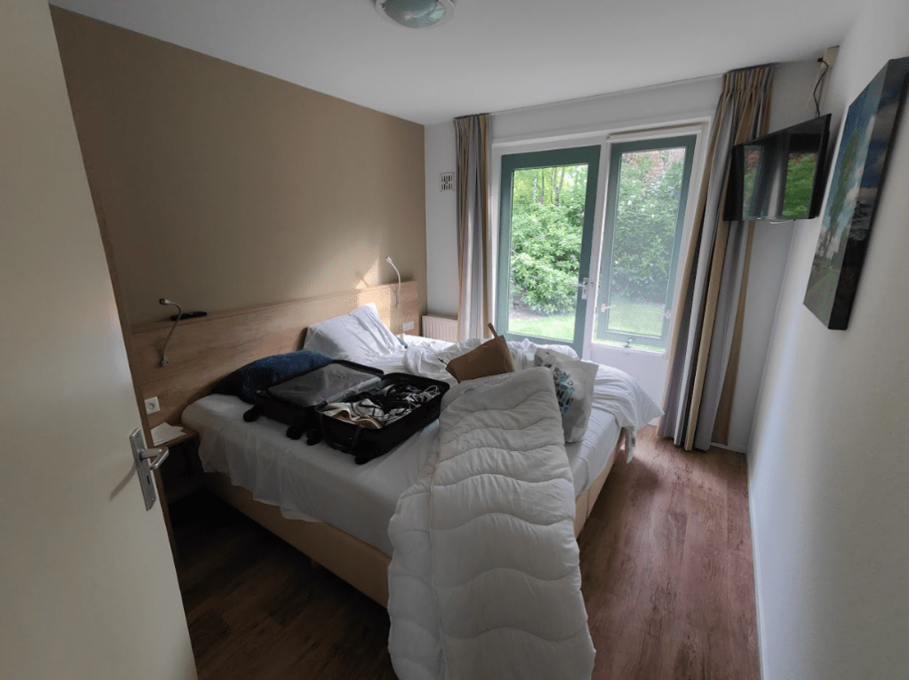 Het enige dat we wat apart vonden, was de indeling van de woonkamer. De bank staat ontzettend onlogisch, dus die hebben we op een andere plek gezet. Maar verder is er niets aan te merken op deze huisjes. De bedden zijn erg goed, al blijft het bij Landal wel heel ingewikkeld dat we niet met twee stellen komen, maar met allemaal soloslapers . Mijn bestie en ik slapen meestal gewoon in een tweepersoonsbed en de mannen allebei los, maar Landal legt altijd beddengoed neer voor precies niet het gekke gezelschap dat wij zijn. Dus ja, elke keer hebben we wel weer een bezoek aan de receptie op de planning, maar dat geeft niks.